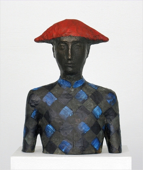 Harlekin (Büste), 2011, Bronze pateniert, coloriert, A.E., 23 x 15 x 12 cm